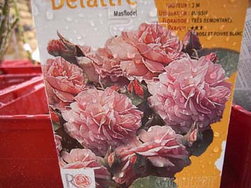とても整った、浅めのカップ咲き。透けるようにピュアなピンク色の花で、よく返り咲きます。