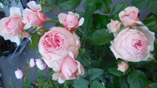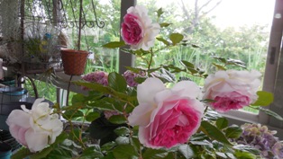 昨日に引き続き屋根の下に避難中のバラ達です。