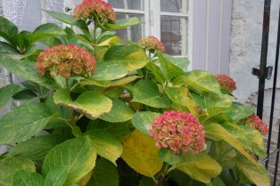 雨上がりの月曜日。アジサイが秋色によい感じです。紅葉した葉が散りそうで散らない…。気温高めの12月です。
