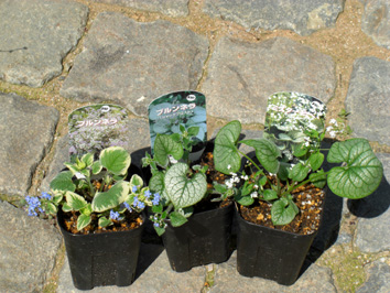 お店の庭の片隅に咲いているブルーの小さな花。去年の秋に植えて、しっかり根を張り、今かわいい花をたくさんつけています。横に這うように広がっていくので、グランドカバーにも使えます。プラティアのポット苗入荷しました!