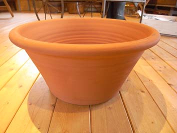 植えやすいかたちの、シンプルなテラコッタ鉢。土がたっぷり入り、安定感のあるかたちです。