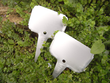 このプランツラベルは、表面を尖ったもので引っかいて傷をつけて記すタイプ。