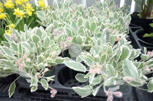 かわいいピンク色のツートンカラーの花が咲きます。カワイイ鉢に植え替えて、葉っぱも花も楽しんでもらいたいパンジーゼラニウムです。今日はしとしと植物が喜ぶ霧雨。タマクルマバソウや大輪の芝桜、きれいなミニバラ…春の植物が色々入荷しました!