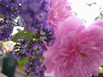 写真は、 Enハーロウ・カー。(華奢な葉っぱと枝がきれいです)と、ヘリオトロープ。深すぎるほどの青紫はバラにとってもよく合うと思います。この時期出回るのは珍しい?そうですが、冬越しを頑張れば、来年の春も咲いてくれます。お店にありますのでチェックしてみてくださいね。