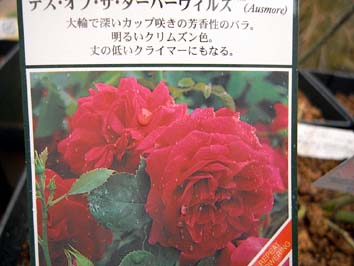 鮮やかなローズレッド。首をうなだれるように咲きます。つるばらとしても扱えます。
