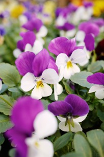 お日様をあびた、ビオラやパンジーの、うつくしいこと!