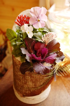 いただいたときの、お正月飾りふうの寄せ植えです。