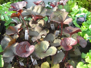 今日は久しぶりの雨でした。そろそろ梅雨入りも近そうです。写真のフキのような葉っぱ。リグラリア・ブラットマリークロフォードと言います。魅力は何と言ってもこの独特の葉色。夏には黄色い花も咲きます。まだ小さな苗なので、本来の葉色がでていないのかな・・。庭の中にリグラリアの大きな株があったら、カッコいいだろうなーと思います。