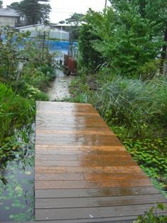 お店に続く、池にかかる橋のリニューアル。