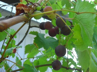 お店の庭にあるブドウの木・巨蜂がなりました。去年、短く枝を切ったので、今年は、ひと房しかなりませんでした。でもキレイ。で、おいしい。