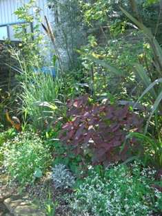 夏も後半戦に入りました。とはいえ、なかなか気温下がらず猛暑の毎日です。お店をお休みしている間も、水やりは毎日していますが、草取りはしばらくお休み…。9月に入って、気温が下がったら頑張ろ。一昨年の記録的猛暑と言われた夏に匹敵する暑い夏ですが、こんな夏でもバテないで優秀なユーホルビア。赤葉のユーホルビアと白いかすみ草のようなダイアモンドフロストです。