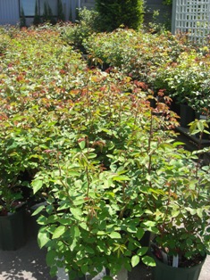バラの苗も、良い感じで茂ってきました。お花もたくさん…、お店が植物であふれています。