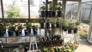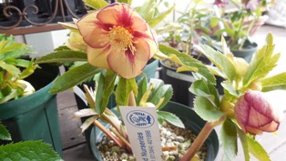 急にあたたくなって、いつもより早く、いろんな植物の芽が動き出しています。クリスマスローズも色とりどりの株が勢ぞろい。
