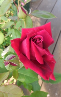 深紅のツルバラ、クリムゾングローリー、香りが素晴らしいです。
