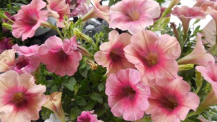 2日間のお休みをいただいて、お店に戻ってきました。バラはずいぶん花開いてきました。満開のときもよいけど、一番心ときめくのは、咲き始めのこの時期。ただいまただいま…と心の中でつぶやきつつ、お店の庭をぐるり1周。曇り空の日は花色がさえています。こんなペチュニアも入りました。