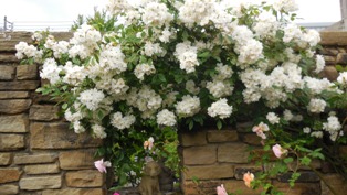 最高気温が21度。しかも曇り。今日と明日は、バラにとって最高の2日間になりそうです。早咲きのスノーグースも満開。白の透き通るような小花が、秋遅くまで繰り返しよく咲きます。