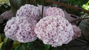 バラシーズンの後半の夏日がおさまったと同時に、梅雨に入りました。ようやく平年並みの気温に下がってホッとしています。バラの花はほとんど一番花を切りましたが、全体を見渡すと、それでもぽつぽつとかわいい花を咲かせています。バラとバトンタッチで、アジサイが咲き始めています。写真はピンクアナベルです。