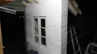 こんな壁を作りました。窓のところからへっぽ子さんがのぞいています。夜の写真なのでなんだか怖い写真になってしまいました…。