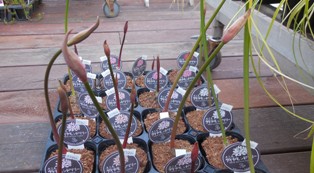 他のバラもぽつぽつと咲き始めましたが、台風の進路が気になる所…。いろいろ秋の花も入荷しました。今年はいつもより少し早く、ダイヤモンドリリーの苗も入りました。花はまだ咲いていませんが、花芽がついています。