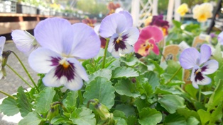 今ラブリーさんには、独特な色や形のビオラがたくさん並んでいます。今回はその中からひとつご紹介したいと思います。淡いブルーとブラウンの組み合わせがすごくシックな品種で名前は「マリア」さんです。水彩えのぐで描いたような色合いですね。写真では彼女の魅力は伝わりにくいかもしれません。ほかにも美人さんやかわいいビオラがたくさんありますのでお近くの方はぜひお気に入りを探しにおいでくださいね。