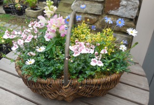 シルバーリーフのラベンダーや斑入りのブルーデージーも明るい葉色で、今週はお店の売り場もパステルカラーです。