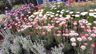 お店の売り場も春になりました!きれいなペチュニアもたくさん売り場に並んで一気に春色です。