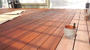 毎日30度を超す暑さです…。お店は休みの間にしかできない仕事がいろいろありまして、今日は売り場のデッキのペンキ塗りでございます。