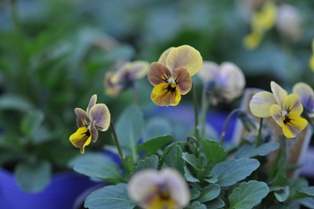 お久しぶりの登場です。 ヘッポコです。楽しいビオラの季節になってきました。庭人さんのビオラ、なんとも表情がある顔なんでしょうか。笑っている顔、怒っている顔、ヘッポコみたいな顔など、どれも違います。イケメンもいるかもね。