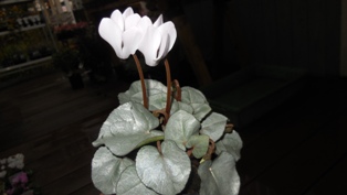 葉の色が美しいガーデンシクラメンです。その名も、ホワイトビューティー。