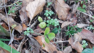 冬の 寒さにも負けず枯葉の下で密かに春の準備をしていました。