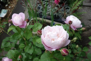 お店は天気の良い日は、平日の火曜日以外、今のところいつも通り営業の予定です。ただ、屋外とはいえ、このバラのシーズンは時間帯により、込み合う時間帯もあります。お店の外の売り場は、通路というか、小道の空いているところを、お客様通しすこし距離を保ちつつご覧いただきますようお願いいたします。