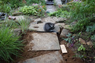 寂しいところに花を植えて、庭が少し生き返った感じに…。一仕事終えた後は右手で小さくガッツポーズ。