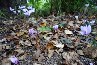 秋のお店のオープンの頃、いつも同じように同じ場所に花を咲かせるかわいい原種のシクラメン、秋咲きのヘデリフォリウム。