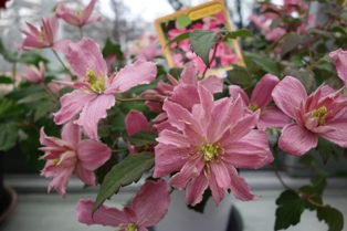 モンタナ・ブロウトンスターという品種です。一重や八重や半八重や気まぐれな咲き方をしておられます。