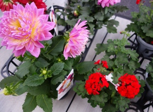 右に見える赤はゼラニウム