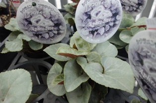 プラチナリーフのアフロディーテというシクラメン。こちらも小さなポット苗での入荷です。