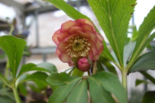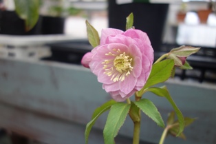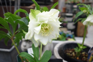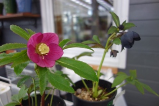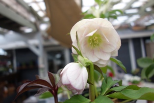 きのうおとといの2日間のうちにパッと咲いていました。お店で持ち越したクリスマスローズの株に花が咲いて、少しづつ咲いたよシリーズをお店に出し始めました。
