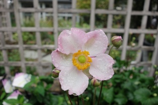 シュウメイギクにようやく秋の気温です。気温が下がって地面にもしっかりしみ込んだ雨。