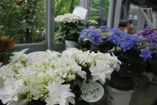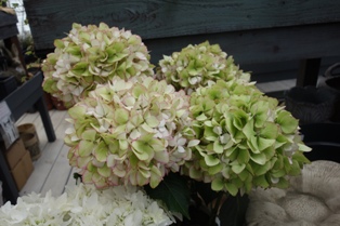 今年のバラのシーズンは天気に恵まれて、長くきれいに楽しめる、そんな年でした。お店の売り場も、気温が低いおかげで、まだ頑張ってバラの花が咲いています。写真はアジサイですが…。白のアナベル、ルビーアナベルなど入り始めました。