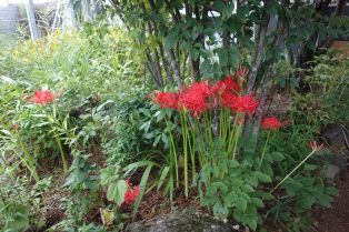 秋のオープンの目安は彼岸花が咲くころ。お店の庭で今年も少しづつ陣地を広げながら咲いています。